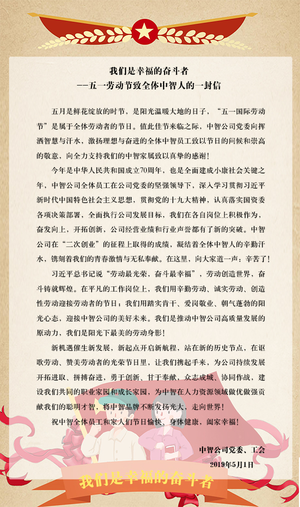 我們是幸福的奮斗者——五一勞動節致全體中智人的一封信