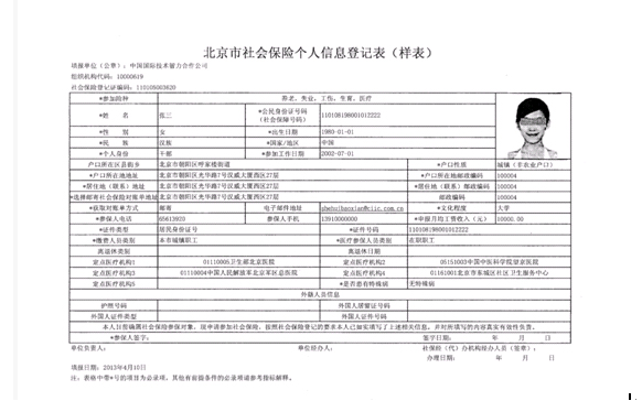 4、為了保證您能夠及時、準確地參加各項社會保險,請務必確認以上信息真實、完整。新參保手續辦理完畢后,中智客戶服務代表將于參保的次月中下旬將《新發與補換社會保障卡領卡證明》發放到您手中作為參保憑證;醫保存折將于參保后的四個月左右發放到您手中,第一次使用存折銀行需要本人出示身份證原件,同時請修改初始密碼(初始密碼為:000000);社會保障卡約在參保后的六個月左右發放,具體發放時間以北京市社保中心下發社會保障卡的時間為準,我司一旦收到將盡快通過用人單位發放到本人手中。