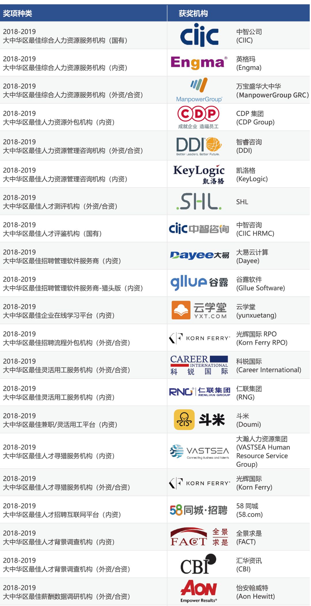 2019年3月29日,由中國領(lǐng)先的人力資源媒體公司HRoot舉辦的中國極具權(quán)威、備受矚目的人力資源評選活動——“2018-2019大中華區(qū)最佳人力資源服務(wù)機(jī)構(gòu)評選(Best HR Service Providers in Greater China 2018-2019)”頒獎(jiǎng)典禮在北京富力萬麗酒店盛大舉辦,今年已經(jīng)是該評選第十四年成功舉辦,數(shù)百家人力資源服務(wù)機(jī)構(gòu)參與,最終評選出24項(xiàng)大獎(jiǎng)。