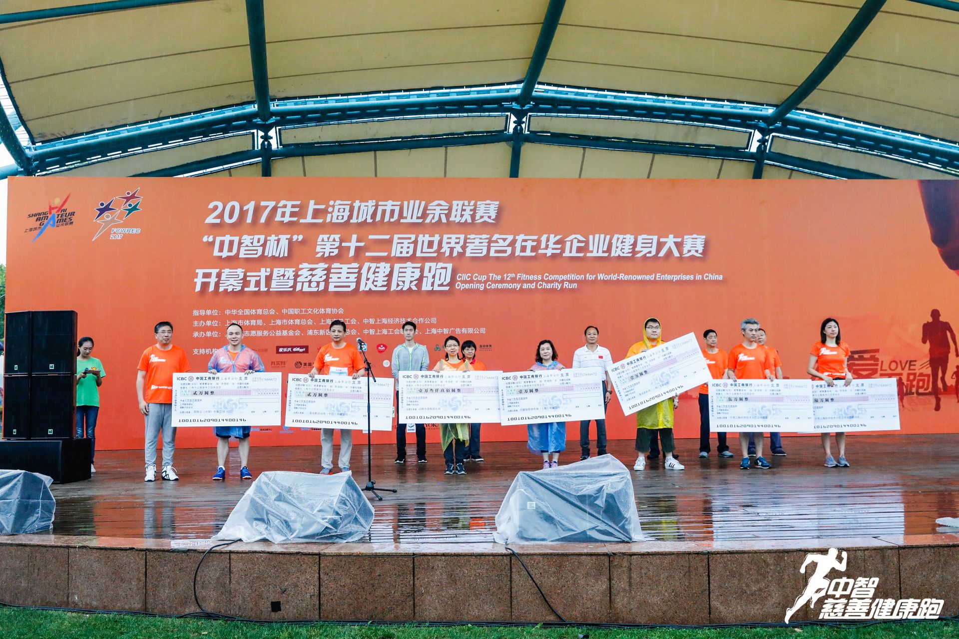 英特爾、三菱、近鐵中國、開捷飾、中智上海黨委、中智上海工會聯合會等企業代表在活動現場捐贈支票。
