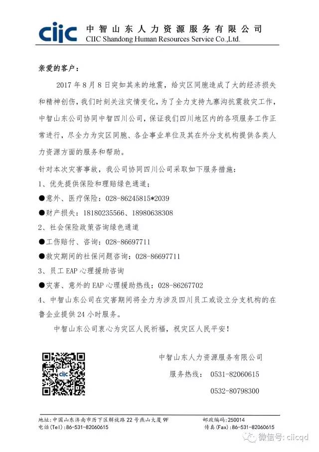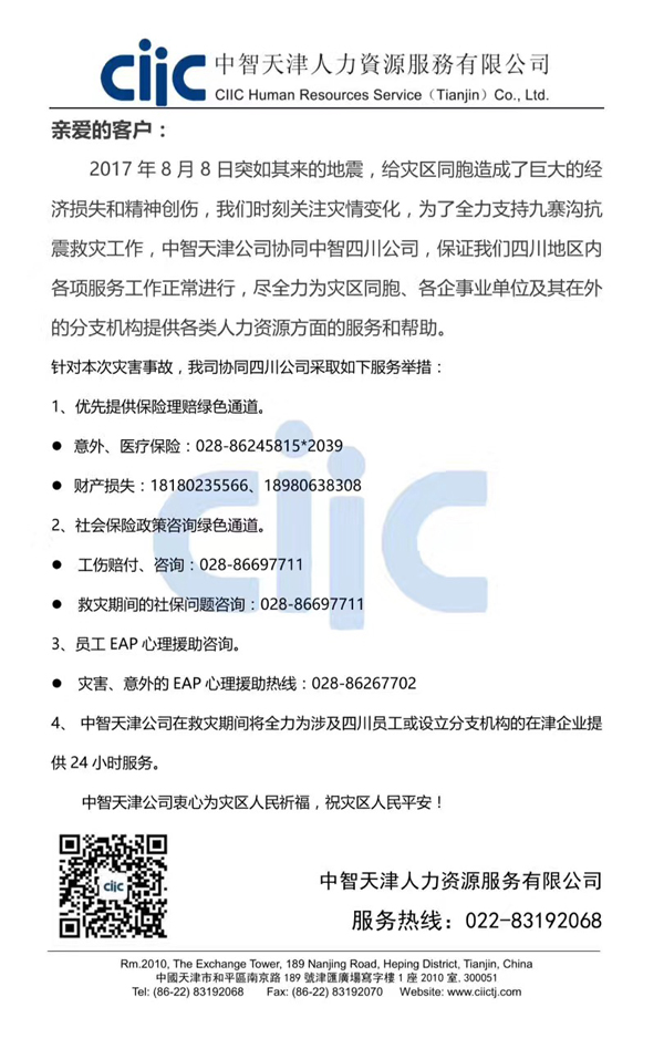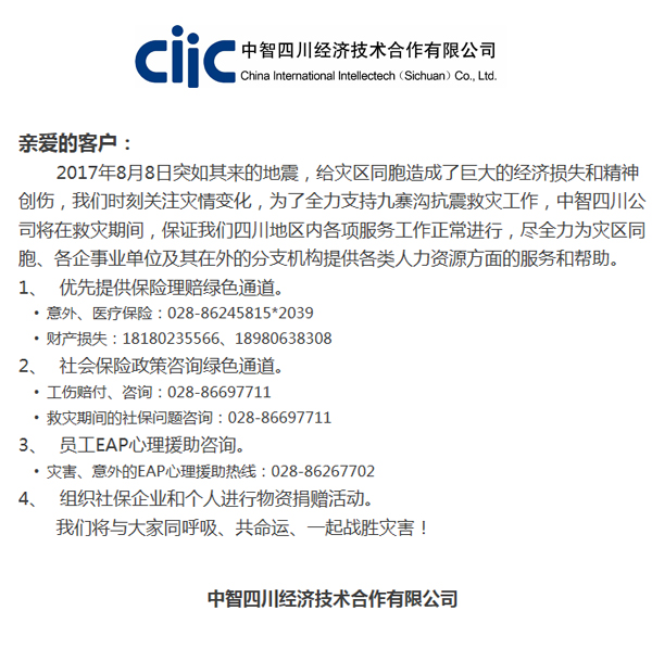 中智四川、天津、山東公司迅速響應,全力支持九寨溝抗震救災工作
