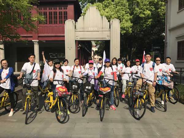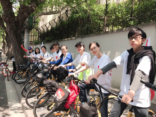 4月23日世界讀書日,中智上海白領青年志愿者總隊在這春光明媚的日子里組織了一場讀萬卷書、行萬里路的志愿騎行活動??傟犞驹刚邆凃T上由活動合作方OFO提供的小黃車,一路騎行宣傳易起讀書籍捐贈公益計劃,并在途中完成各個與讀書相關的定點任務。