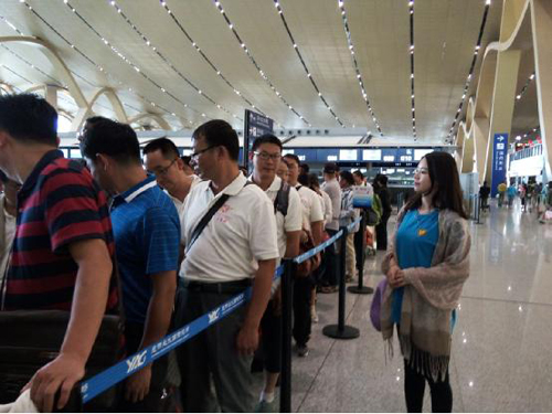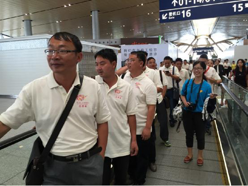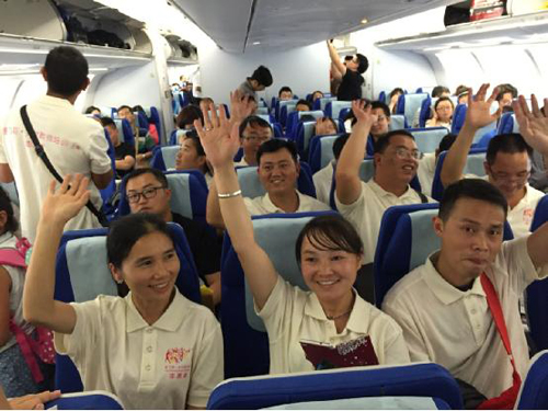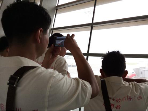 | (因為老師們都是第一次乘飛機,志愿者們特意前往當?shù)厝膛阃蠋焸儊砩虾!#?/strong> |