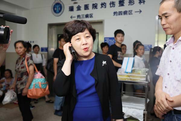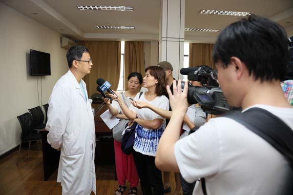 | 瑞金醫(yī)院灼傷整形科主任醫(yī)師張勤正在介紹王海濱的最新傷情情況 |